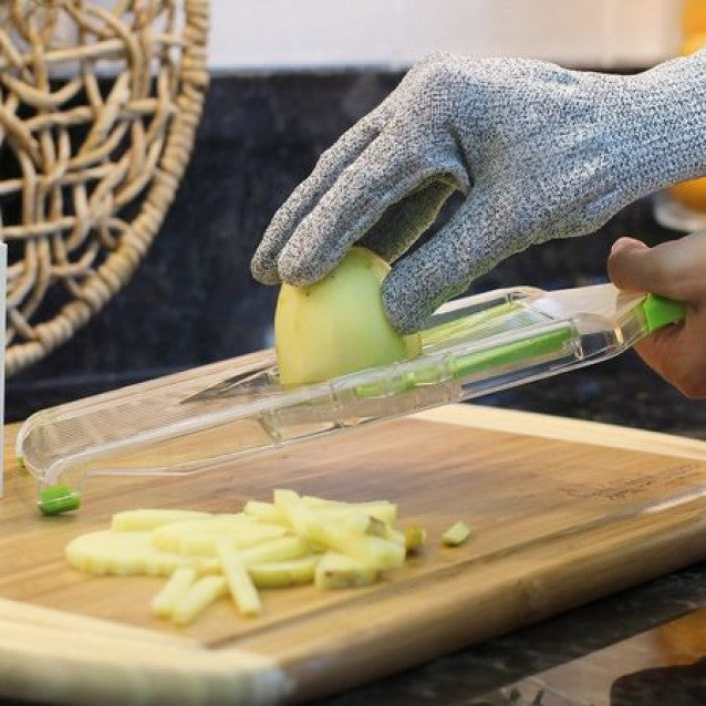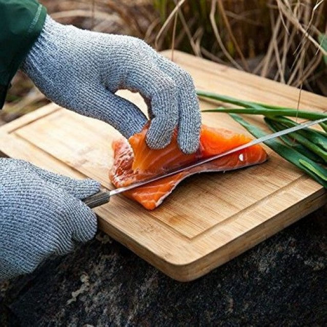 Descriere:Manusi de protectie pentru bucatarie;Manusile va protejeaza de accidentele neplacute din bucatarie fiind ideala in timpul taierii sau razuirii alimentelor;Sunt confectionate din spandex, fibra de carbon si polietilena cu molecule ultra rezistente, material care le confera caracterul rezistent;Culoare gri.