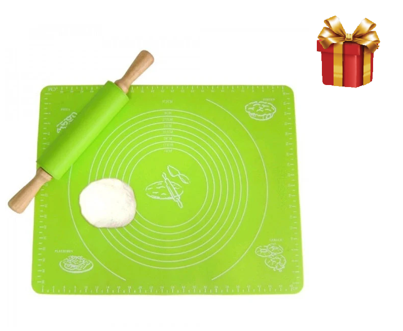 Plansa antiaderenta din silicon pentru aluat+Sucitor rotativ din silicon+CADOU articol bucatarie