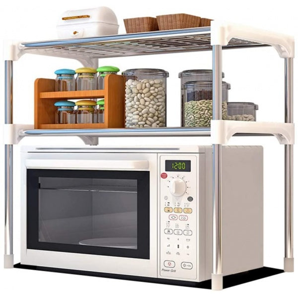 Facut din bare otel inoxidabil si accesorii de conectare din plastic, este un element de mare ajutor in casa dumneavoastra. Cele doua rafturi sunt realizate tot din bare puse la distanta mica una langa cealalta, permitand circulatia aerului si evita depunerea prafului.