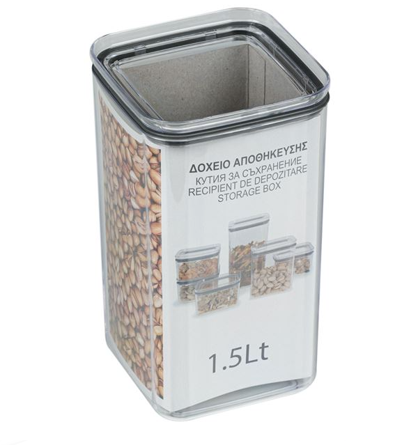 Recipient depozitare alimente transparent din plastic, stivuibil 1.5L