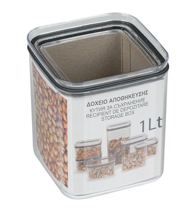 Recipient depozitare alimente transparent din plastic, stivuibil 1L