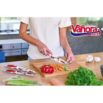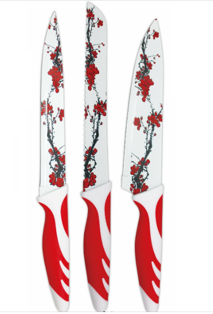 Setul contine 3 cutite fabricate din inox acoperit cu un strat antiaderent si maner antiaderent.- Cutitul bucatarului 20 cm