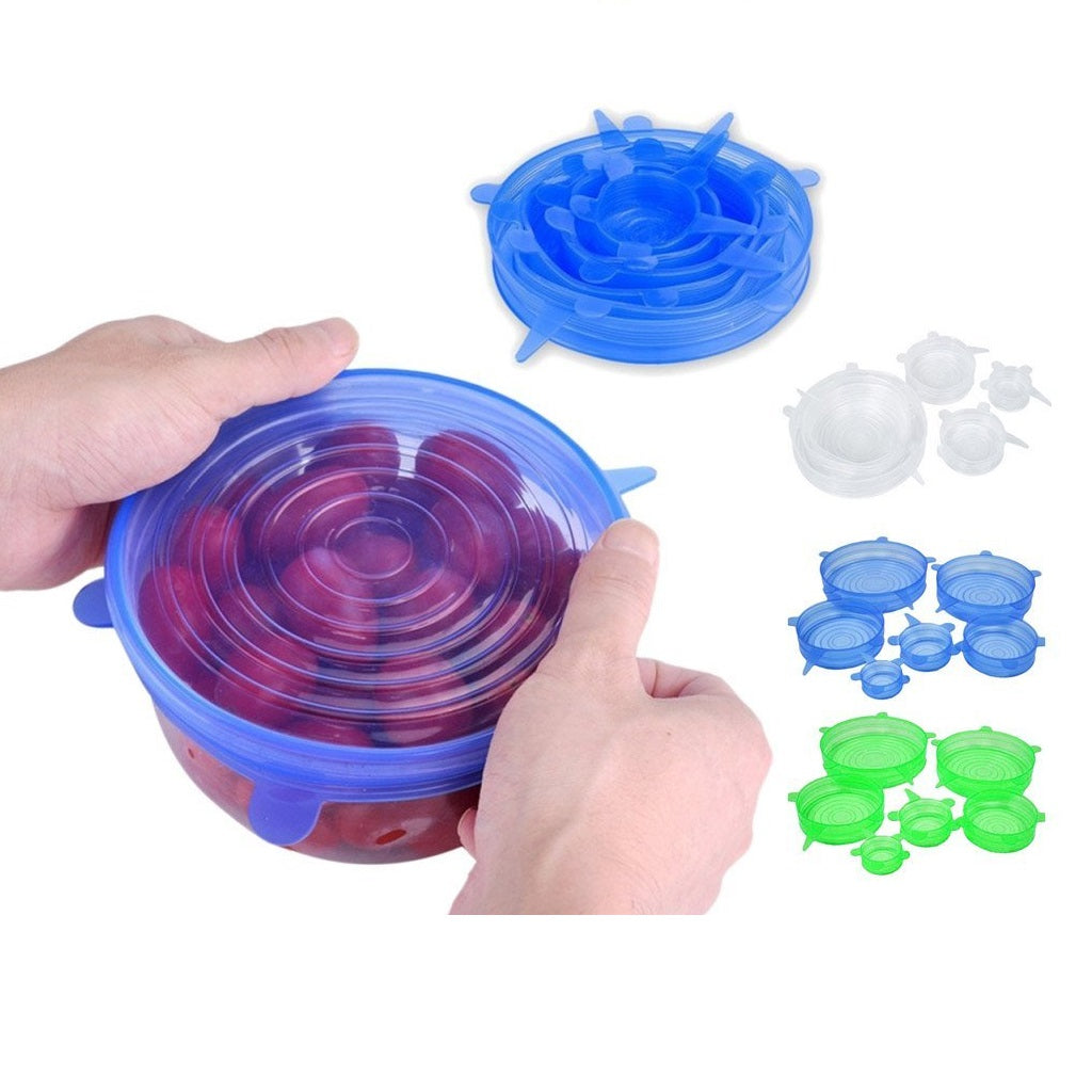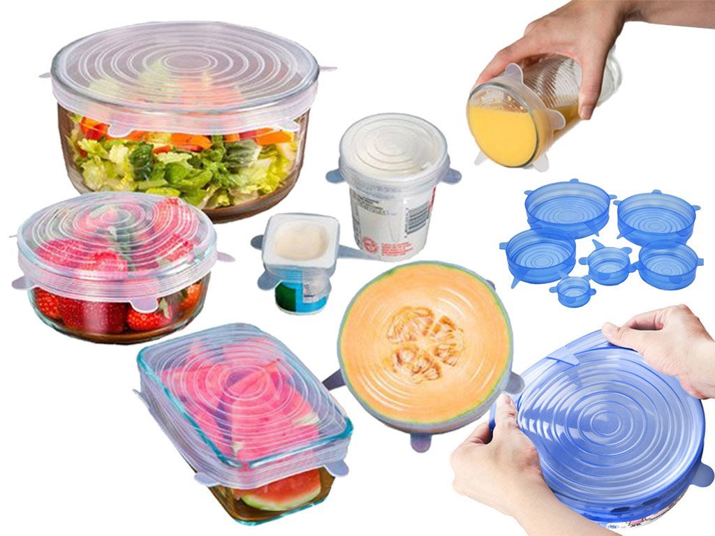 Set 6 capace elastice silicon pentru acoperirea oalelor și castroanelor
