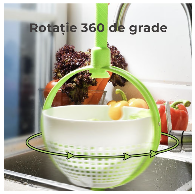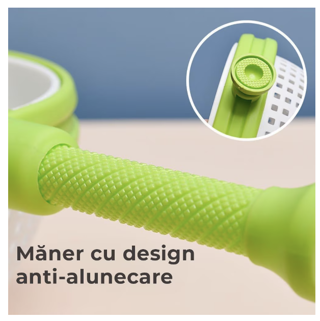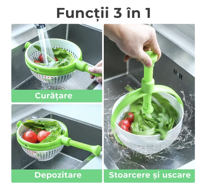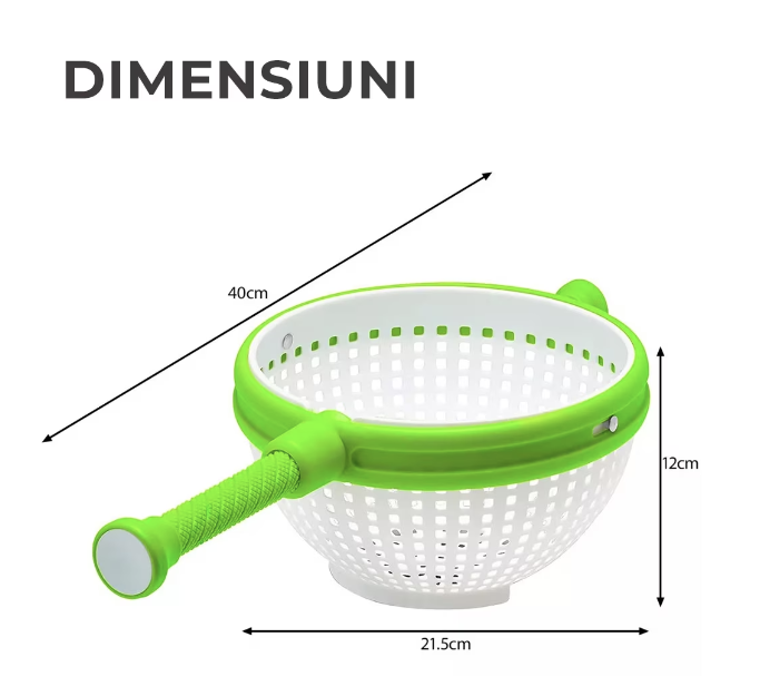 Strecuratoare rotativa pentru spalat-uscat salata, centrifugare, maner extensibil