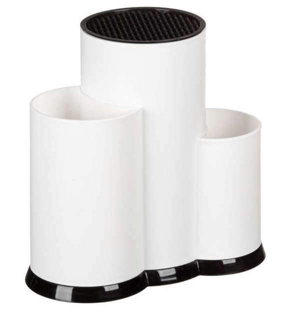 Suport cilindric pentru cutite si 2 compartimente pentru ustensile de bucatarie.