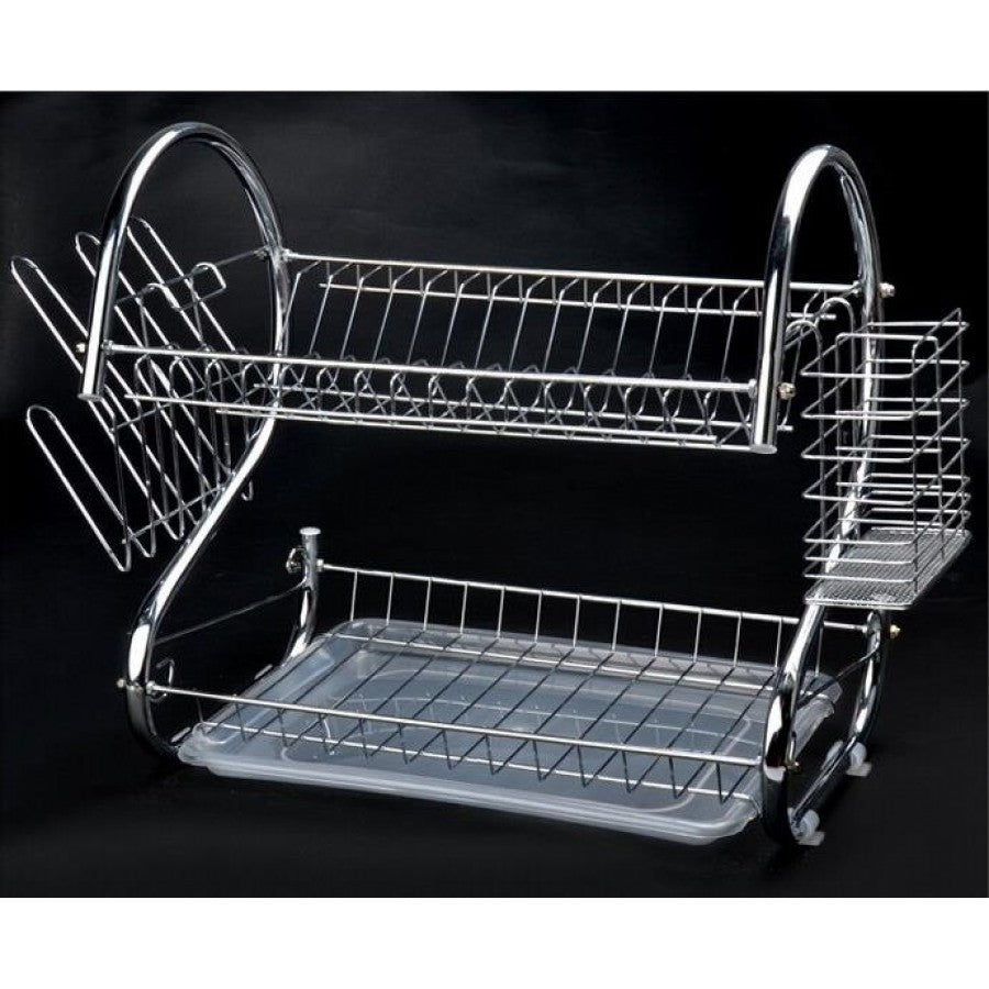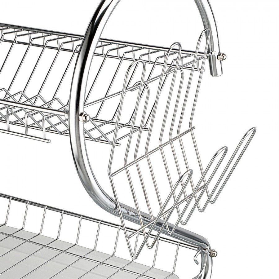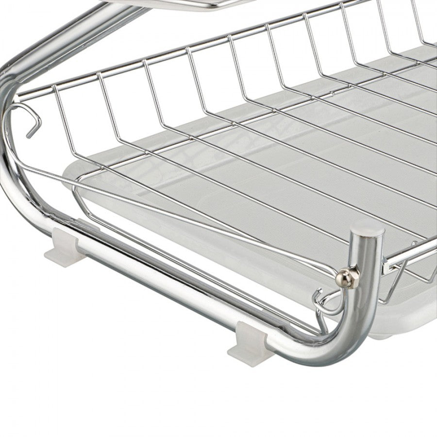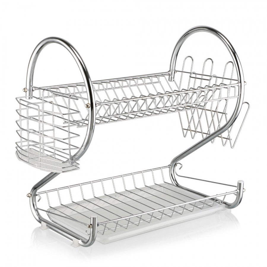 Suport vase cromat cu tava din plastic este fabricat din otel rezistent cromat, fiind prevazut cu o etajera ce permite scurgerea a 18 farfurii, iar pe partea de jos a suportului este prevazuta cu tava colectoare.Suportul de vase este practic, usor de montat si extrem de util pentru bucataria dumneavoastra. Partea de sus este destinata pentru asezarea farfuriilor iar in partea de jos se pot usca paharele si canile.Lateralele sunt prevazute cu doi suporti, unul pentru tacamuri si unul pentru cani, astfel se poate folosi in functie de necesitatile dumneavoastra. Suport vase supraetajat,cu suport tacamuri,suport 6 pahare si tava de scurgere este ideal pentru a usca vasele usor, acestea ramanand perfect curate. Caracteristici generale suport vase supraetajat cu 2 nivele pentru bucatarie:- partea de sus este potrivita pentru a aseza farfuriile, iar in partea de jos puteti aseza paharele si canile - partile laterale le poti folosi in functie de necesitatile dumneavoastra - tava si suportul pentru tacamuri sunt din plastic usor de spalat - doua nivele de farfurii, boluri, si cani- carlige laterale pentru pahare- suport detasabil pentru tacamuri- tava de jos pentru colectare apa este detasabila- fabricat din material cromat rezistent la rugina - dimensiuni: 390mm x 110mm x 250 mm- greutate produs: 1,4 Kg