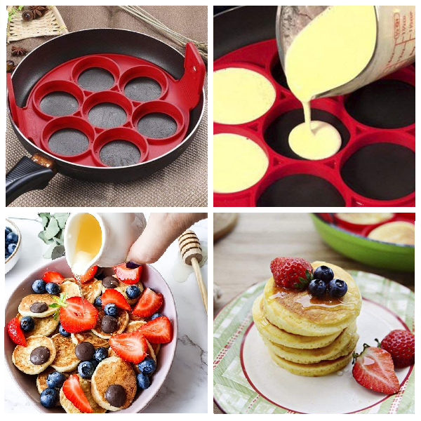 Bucurati-va de clatite, briose si torturi fara mizerie. Atunci cand este utilizat ca distribuitor de aluat pentru pancake, permite o amplasare precisa direct pe tava, tigaie sau oriunde este nevoie de aluat. Dispozitivul are capacitate de pana la 4 cani sau 900 ml de aluat.Forma din silicon pentru mini clatite are urmatoarele caracteristici: