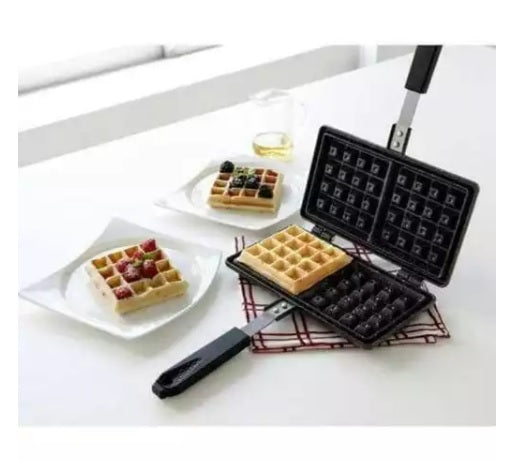 Pregatiti aluatul, puneti aparatul pe aragaz sa se incinga, turnati aluatul, presati si vafa este gata.