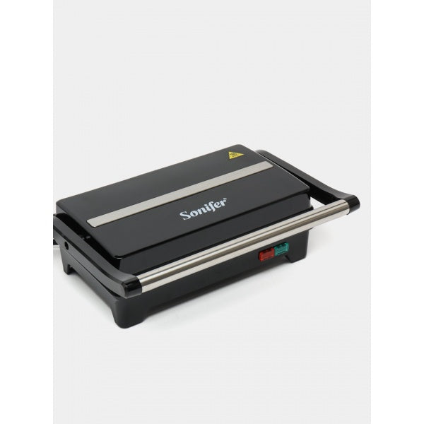 Cu un design modern și compact, Sonifer SF-6098 îmbină eficiența cu estetica plăcută. Grătarul electric este echipat cu o suprafață generoasă de gătit, care permite pregătirea mai multor feluri de mâncare simultan. Grătarul dispune de elemente de încălzire puternice și reglabile, permițându-ți să controlezi temperatura în funcție de preferințele tale culinare.