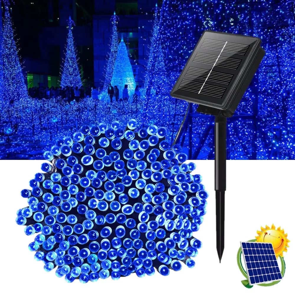 Set 2 x instalatie solara 100 led, exterior, multicolor, albastru, alb rece, alb cald, total 20m