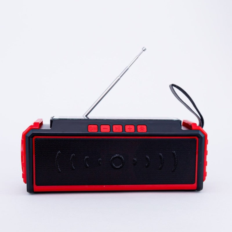 Reproduce muzica de pe cartele de memorie micro SD sau dispozitive USB flash, precum si de la orice device care are functia Bluetooth.Aceasta boxa este combinatia perfecta dintre sunet de inalta calitate si putere, ambele la un pret mic raportat la calitatea acesteia.Datorita bateriei incorporate cu incarcare solara, a manerului convenabil, precum si a unui design ergonomic, aceasta boxa este ideala pentru utilizarea in aer liber si in calatorii. Aceasta fii dotata si cu o lanterna, pentru a vedea pe timp de noapte.Specificatii:Gama de transmisie wireless 10MRaportul de zgomot audio ≥90 dbCapacitatea bateriei 1200mAhVoltaj 3,7VTimp normal de redare a volumului 5-6 oreSpecificatia cornului OD 52mm x2bucPutere de iesire : 10W / 30W P.M.P.ORaspunsul in frecventa 120hz-20khzTensiunea de incarcare 5V / 500MAPanou solarCulori disponibile: Rosu, Albastru, Negru, Galben,in functie de stocul disponibil.Va rugam sa specificati in comanda ce culoare doriti.Pachetul include:1 x difuzor1 x cablu USB1 x cablu AUX