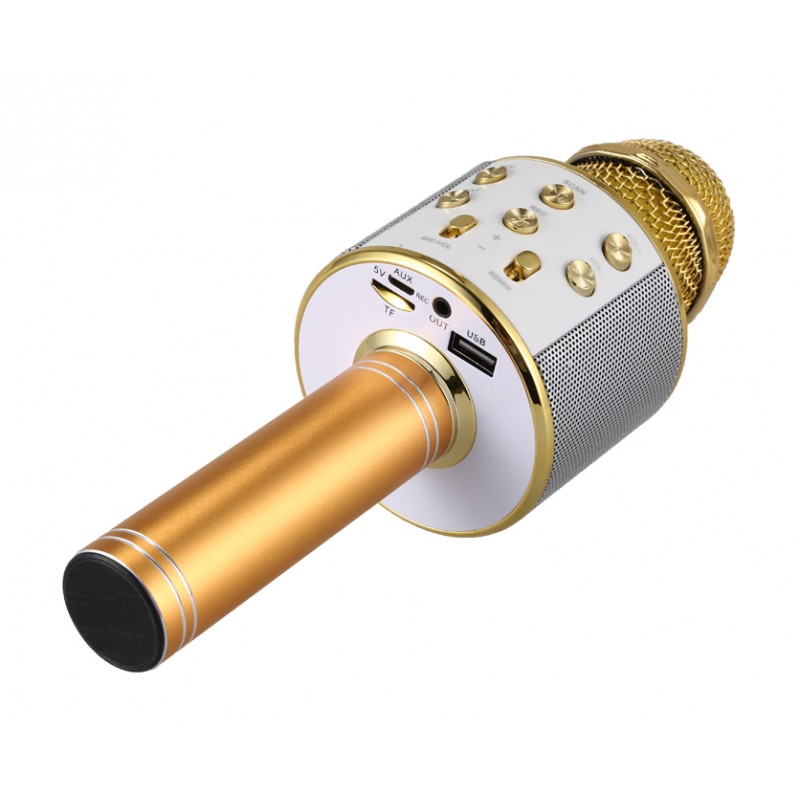 Noul microfon și difuzor WS 858 wireless portabil 2 în 1, este capabil de conectivitate fără nici o conexiune suplimentară datorita tehnologiei bluetooth 4.1 ce poate fie asociat cu dispozitive compatibile Bluetooth. Calitate excelentă a sunetului cu efecte de reverberație ecou este potrivit pentru smartphone-uri iOS și Android, iPad, tablete, orice dispozitiv compatibil Bluetooth.Este compatibil cu majoritatea programelor audio de pe telefon sau de pe computer. Puteți conecta la telefon cu Bluetooth sau cu mufă audio de 3,5 mm.Avantaje:1. Microfon Bluetooth Wireless cu difuzor inclus ce functioneaza simultan2. Sistem de reducere a zgomotului cu 3 straturi pentru redarea exacta a sunetului.3. Suporta Functia TF-Card, plug and play.4. Panou pentru reglarea sunetului multi-functional Parametrii:Material: ABS + aluminiuCuloare: AuriuMarime Produs: Inaltime Microfon 250mm, Difuzor 70*70*65mm (aprox.)Greutate: 460g (aprox.)Output power: 10mw headphone output 5w speaker outputIncarcare: DC5VFrequency range: 100mhz-10000mhzNivel Maxim Presiune Acustica: >115db 1khz THD<1%Reverb mode: echo is active reverbPower supply: built-in 18650 batteryCapacitate baterie: 1800MahVersiune Bluetooth: Bluetooth 4.1, transmisie stabila, consum mic Pachetul Include:1x Microfon1x Cablu IncarcareCulori: gold, negru, rose gold (in functie de stoc)