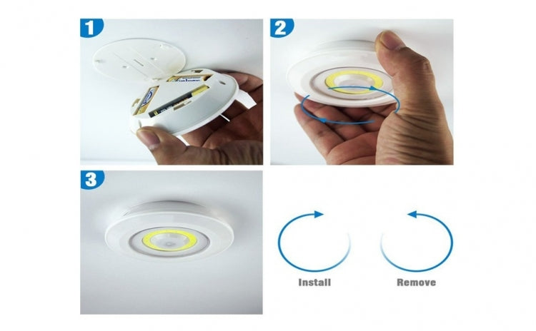 Specificatii:- lumina LED 3W COB x 3;- montare: banda adeziva;- functioneaza cu 3 baterii AAA - NU sunt incluse;- baterie telecomanda: 2 baterii AAA - NU sunt incluse;- reglati setarile de luminozitate de pe telecomanda;- dimensiune lampa: 9 x 7 x 2.1 cm;- dimensiune telecomandA: 8 x 5.9 x 1.5 cm;- Material: ABS + PS.