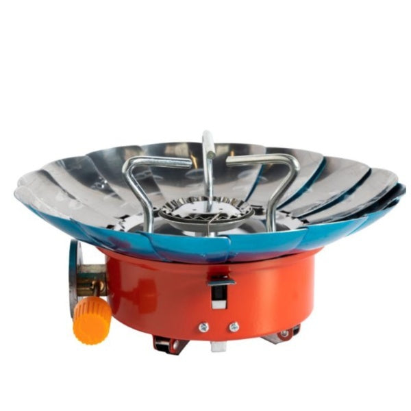 Fiind dotat cu protectie impotriva vantului, sub forma unei flori de lotus, aragazul portabil se preteaza folosirii in aer liber in conditii neprielnice. Pliabil, greutate redusa, husa pentru transport.